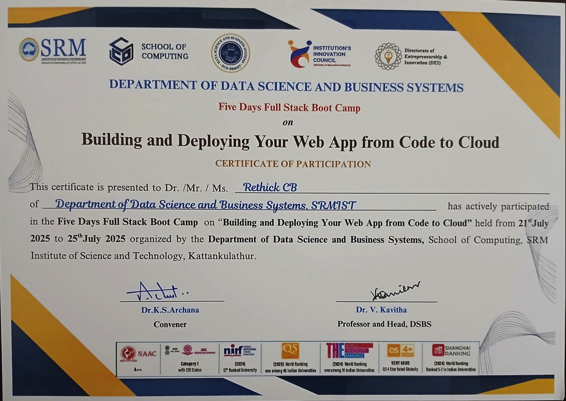It was conducted during Innovatex'25, organized by the SRMIST ACM SIGAI Student Chapter, Department of Computational Intelligence, School of Computing, SRM Institute of Science and Technology.